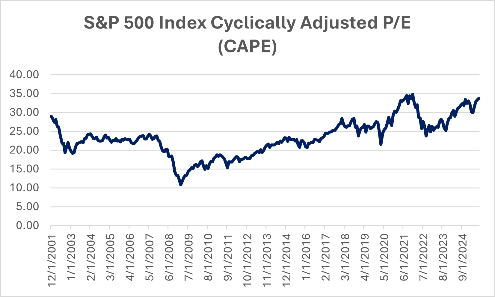 Not every 30 year period is created equally, of course. And, how an individual invests can increase or reduce their comfort in retirement. What is a good comparable time period for investors and prospective retirees today? Helpfully, where we started nearly a quarter century ago strongly resembles today’s markets. The S&P 500’s CAPE valuation is nearly identical.